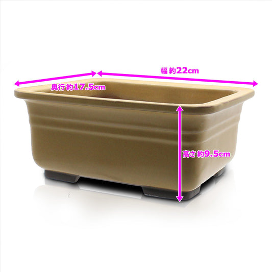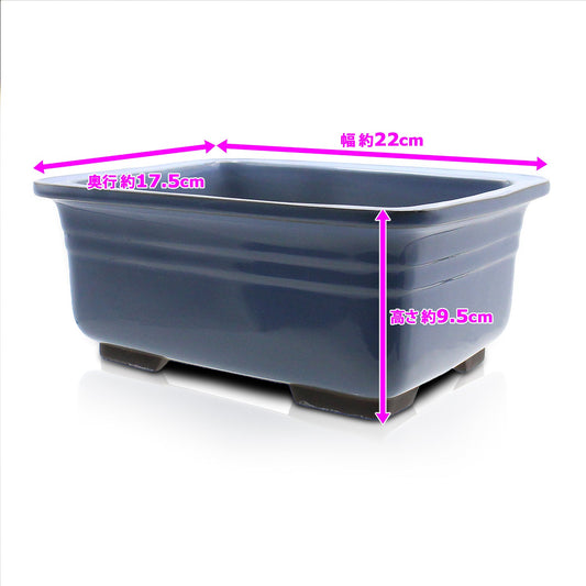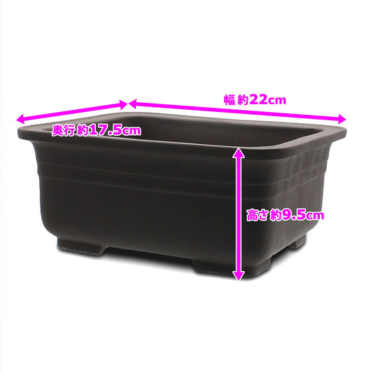 盆栽鉢 ナデ角中帯深 ウ泥(烏泥) 瀬戸焼 (7号(約22センチ))
