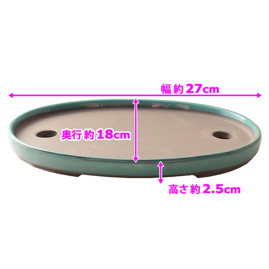 盆栽鉢 小判切立浅 四日市萬古焼 ((8号(約27センチ)), 織部釉(緑))