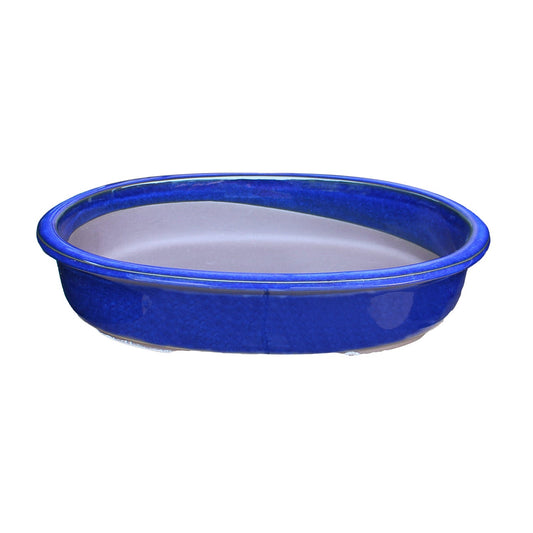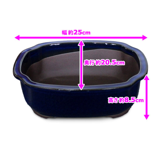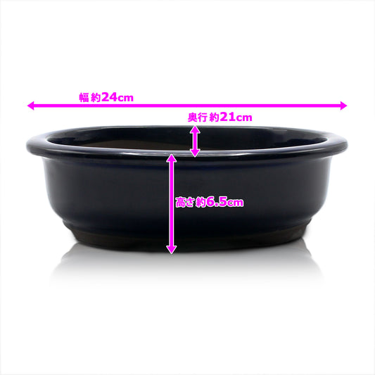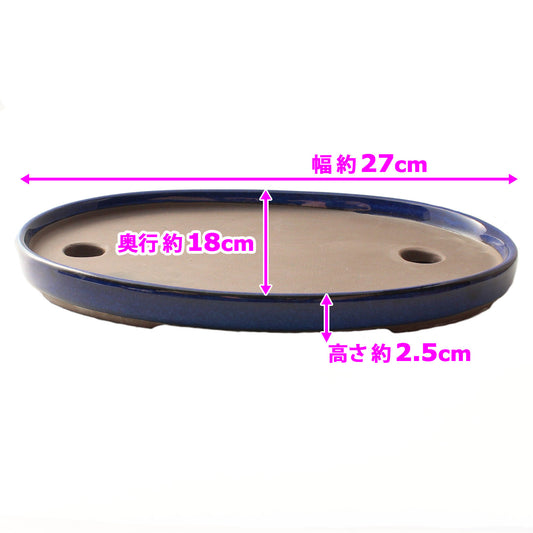 盆栽鉢 小判切立浅 四日市萬古焼 ((8号(約27センチ)), 海鼠釉(青))