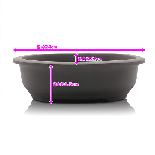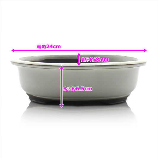 盆栽鉢 8号 オカメ小判 う泥 瀬戸焼 陶器 浅め 山野草 雑木 松柏 大型 中型 約25センチ