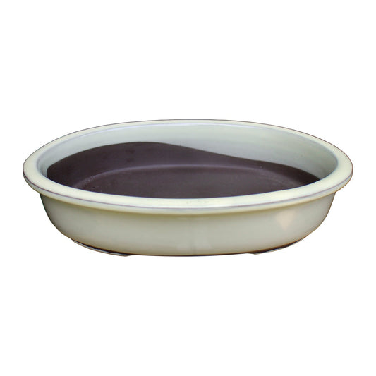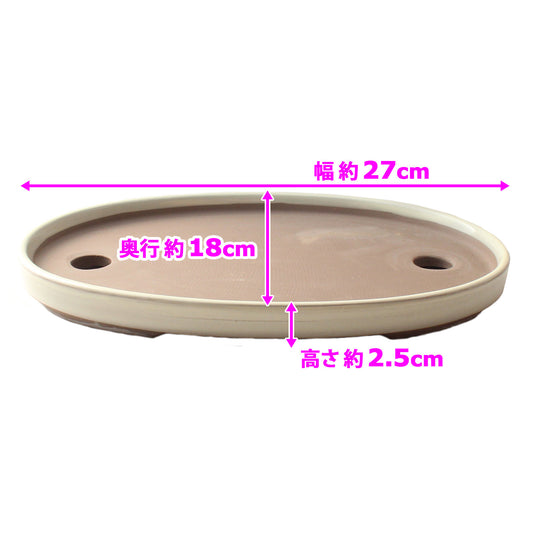 盆栽鉢 小判切立浅 四日市萬古焼 ((8号(約27センチ)), クリーム釉(白))