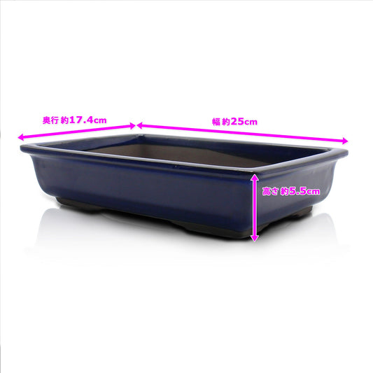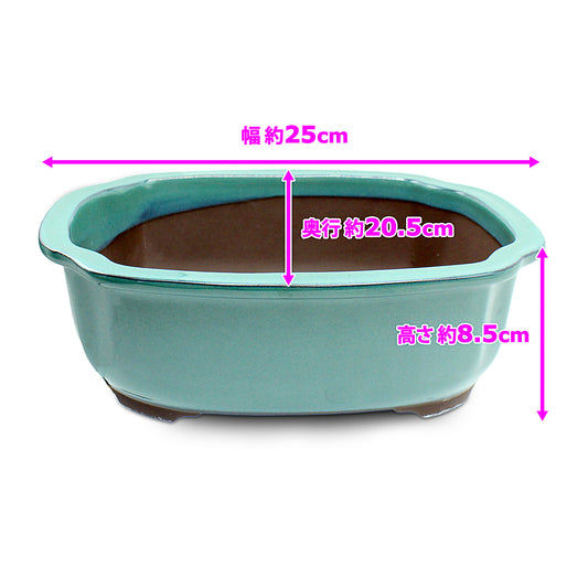 盆栽鉢 長角マド入 青色 海鼠釉 瀬戸焼 (8号(約25センチ))