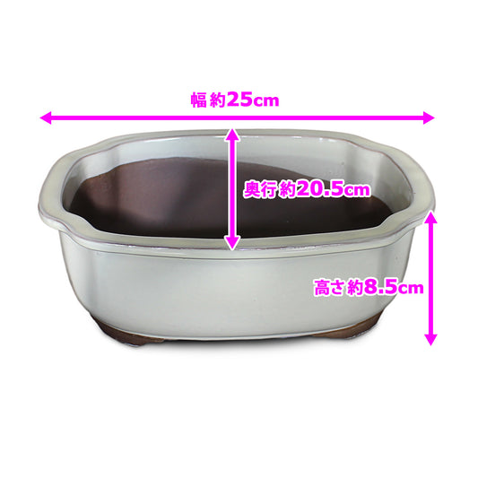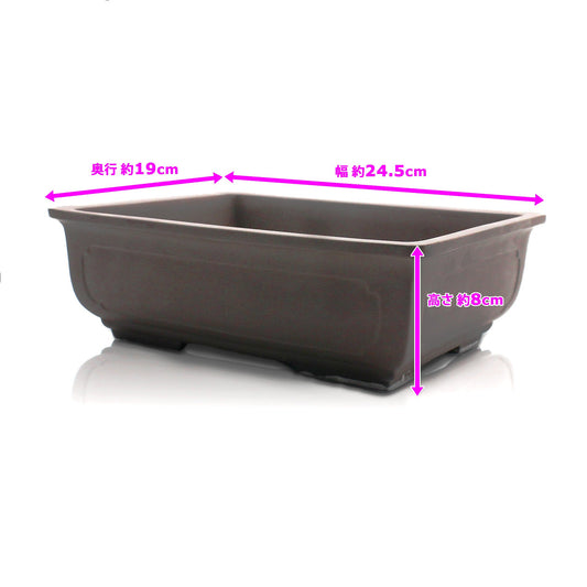 盆栽鉢 長角マド入 ウ泥 松柏用 四日市萬古焼 (8号(約24.5センチ))