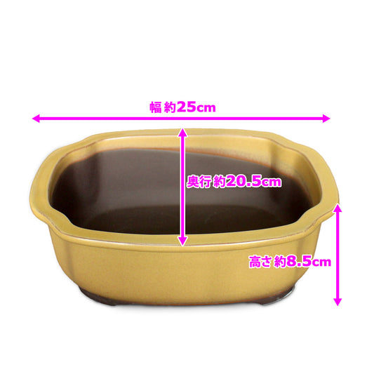 盆栽鉢 木瓜鉢 モッコ鉢 瀬戸焼 (8号(約25センチ), 黄釉)