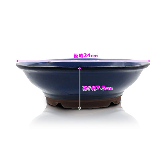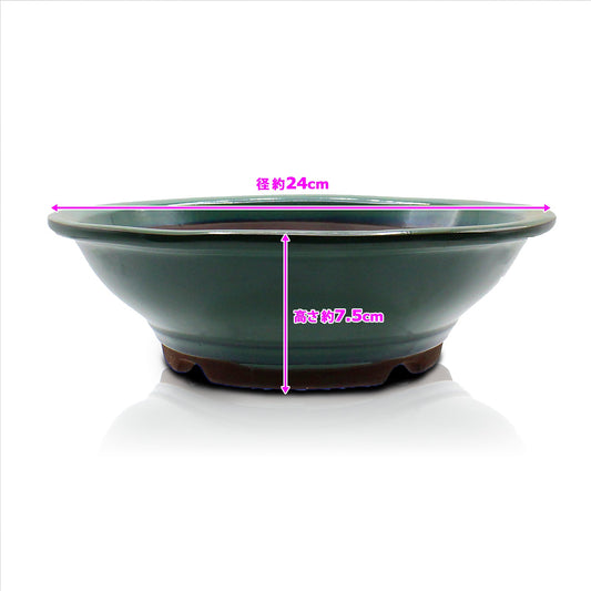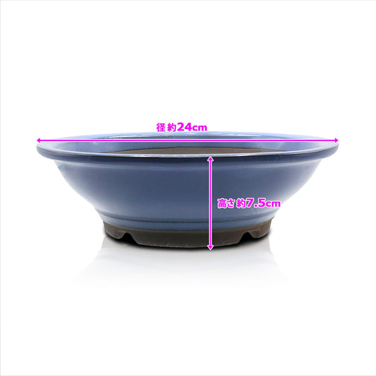 盆栽鉢 丸陣笠鉢 青色 海鼠釉 四日市萬古焼 8号 約24センチ