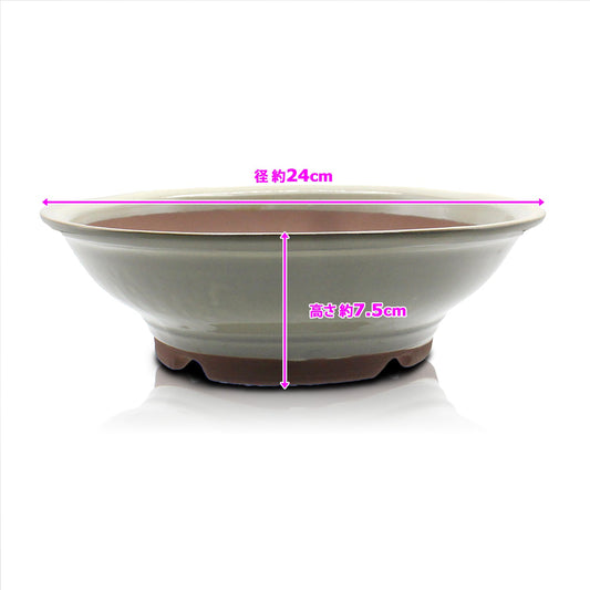 盆栽鉢 丸陣笠鉢 白色 クリーム釉 四日市萬古焼 8号 約24センチ
