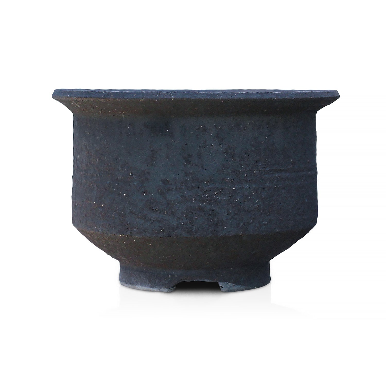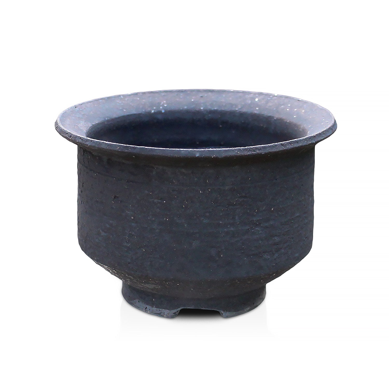 信楽焼 陶器鉢 中深エン付 M 3-4号 黒鉄釉 約12センチ
