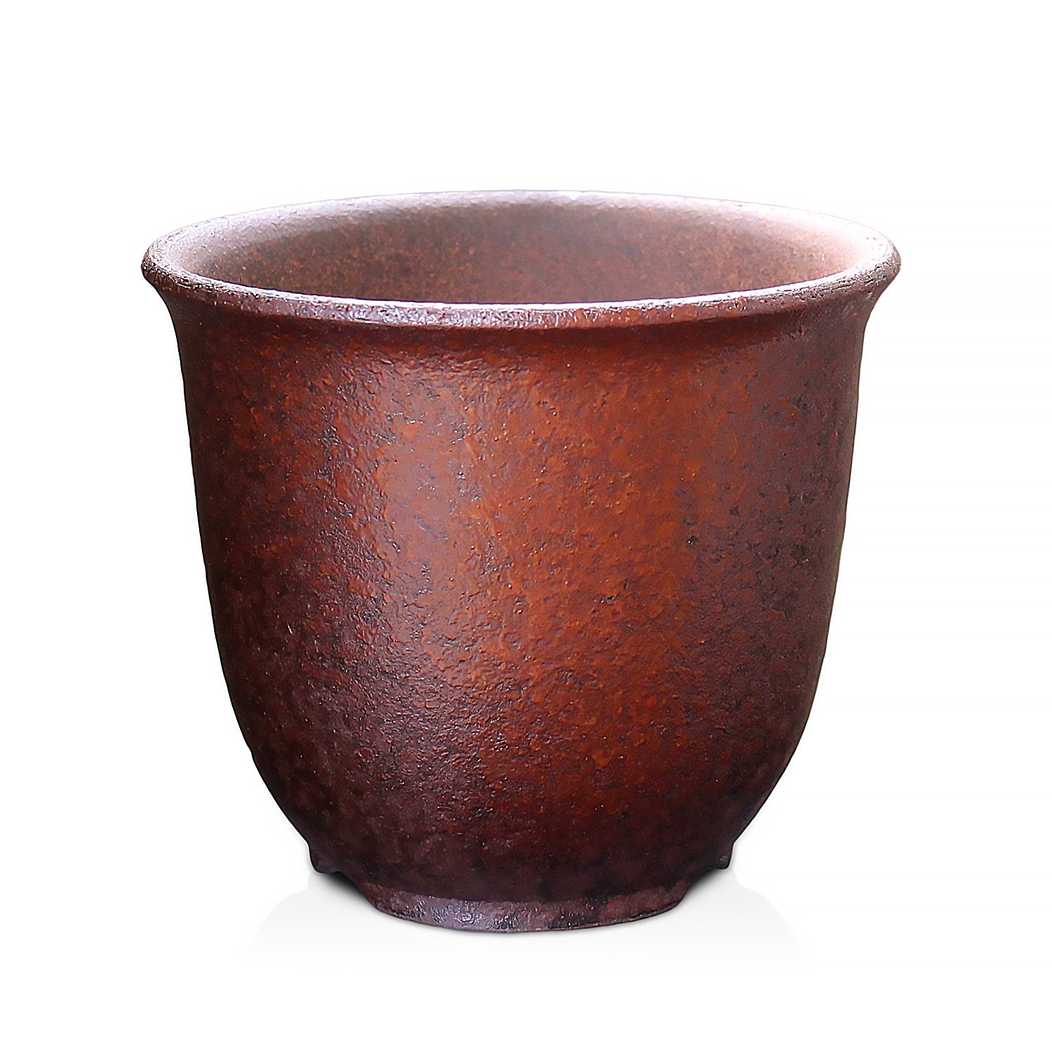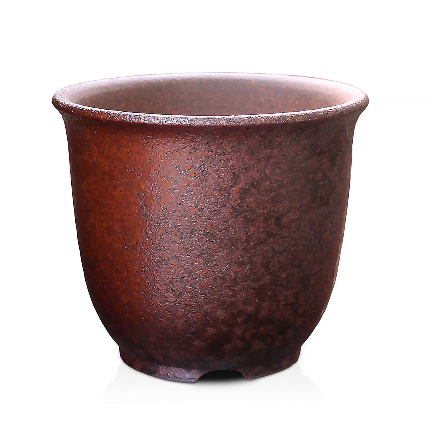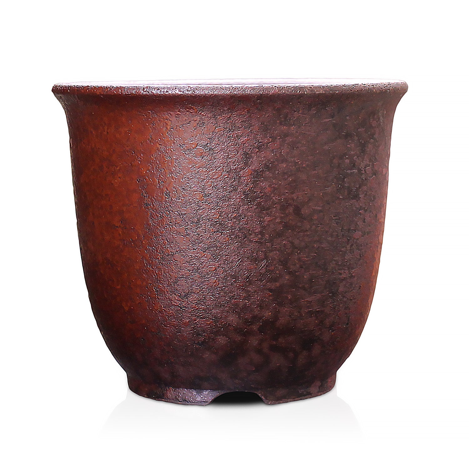 三重県四日市市の萬古焼で、落ち着いた色味の赤い釉薬が吹き付けられたザラザラした感触の鉢肌で、「赤吹」のカラーです。