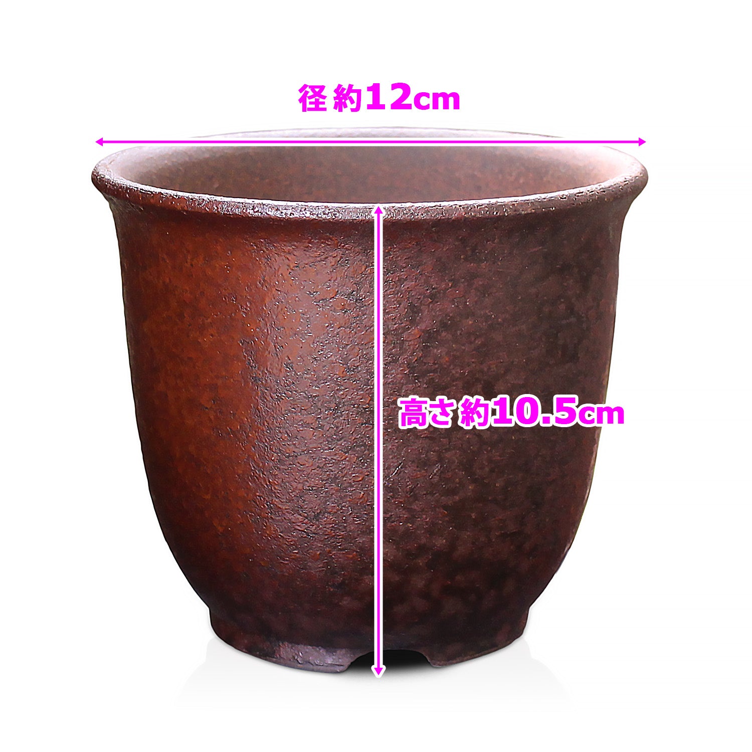 盆栽鉢 エビネ鉢 赤吹 4号 四日市萬古焼 丸 円形 陶器 約12センチ