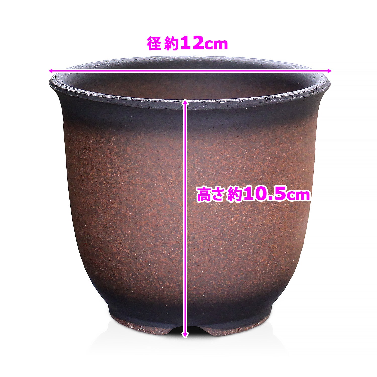 盆栽鉢 エビネ鉢 黒吹 4号 四日市萬古焼 丸 円形 陶器 約12センチ