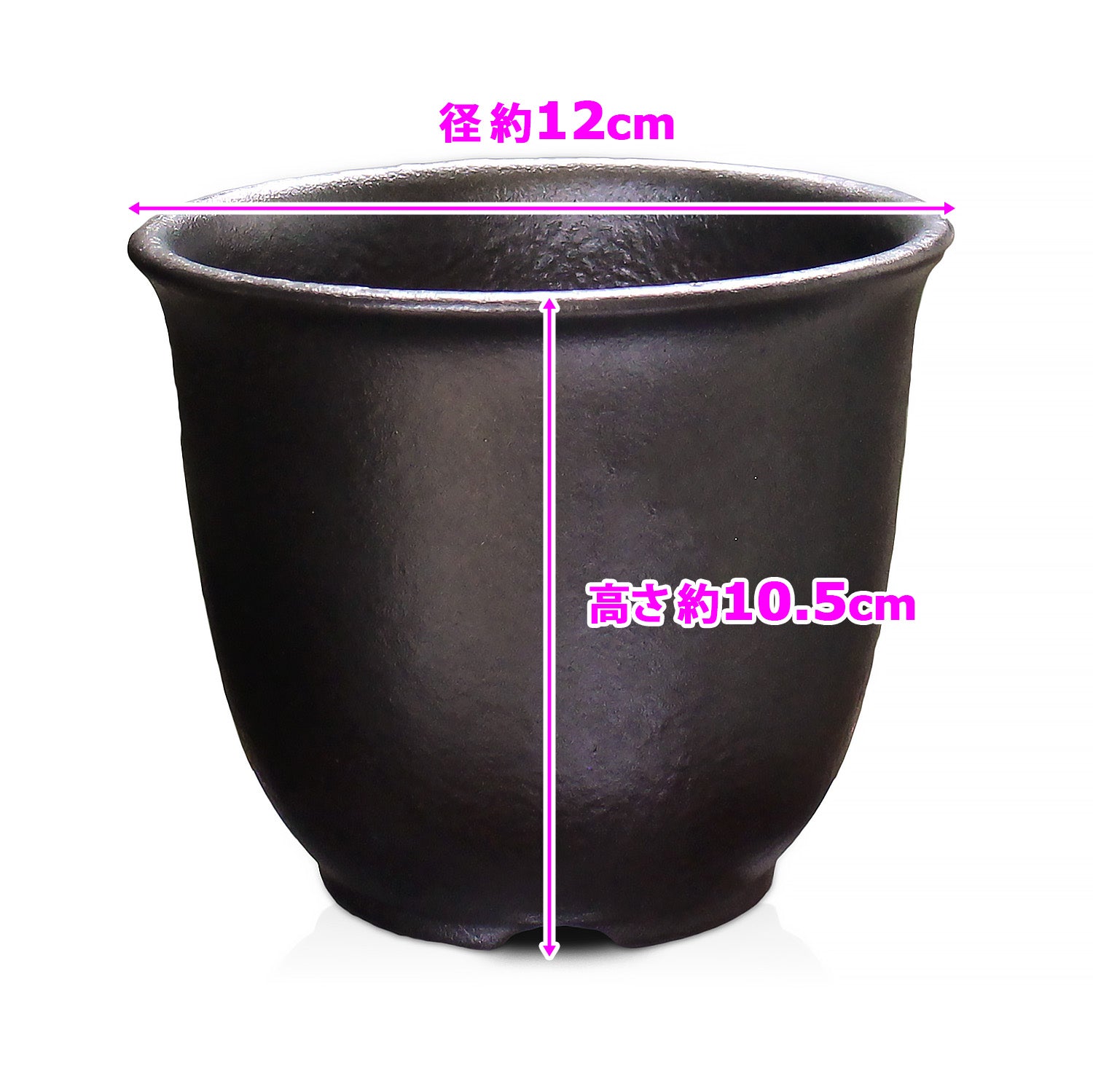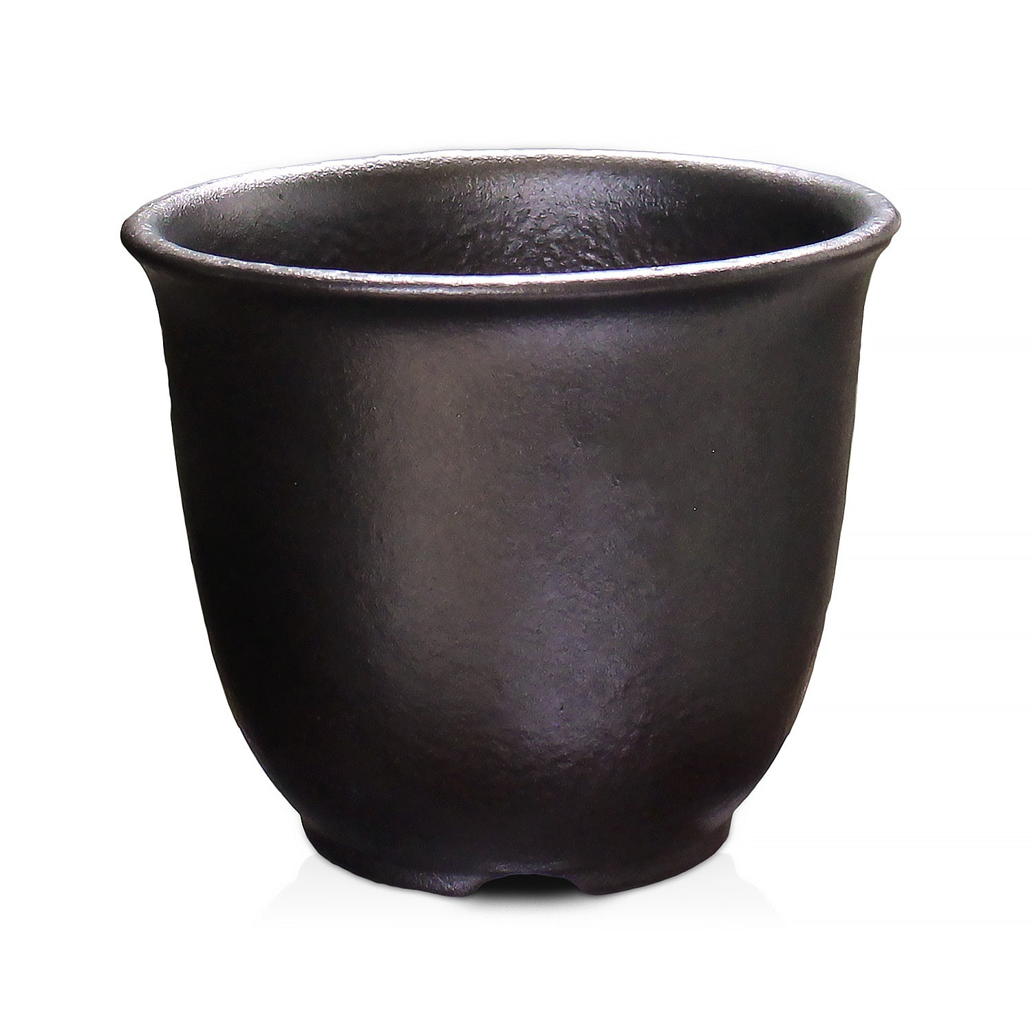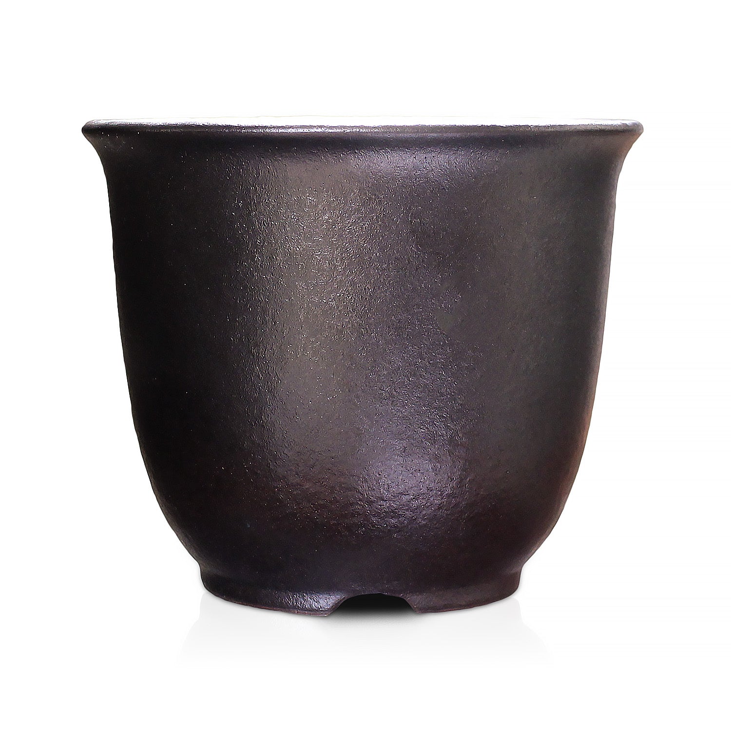三重県四日市市の萬古焼で、黒マット釉による暗褐色でツヤ感をおさえた渋い鉢肌の鉢です。