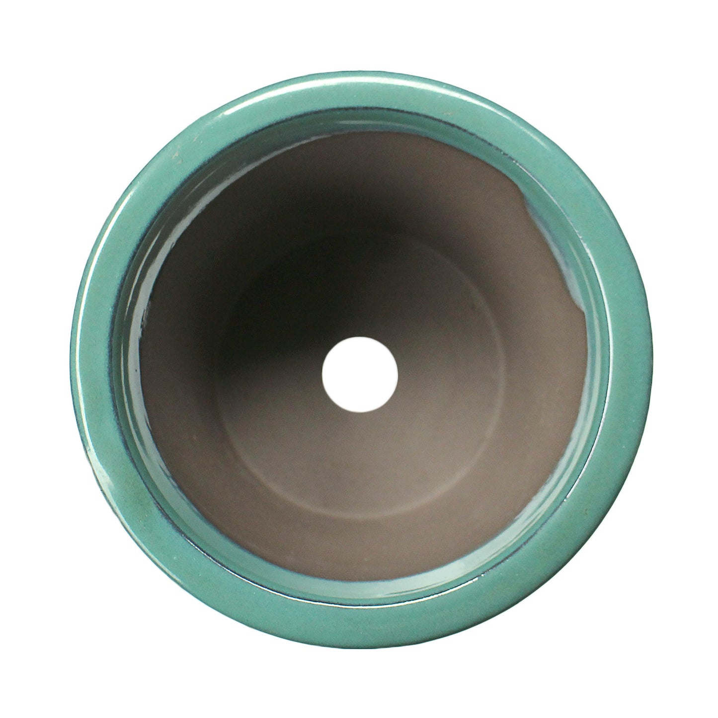 盆栽鉢 丸反型鉢 緑色 織部釉 瀬戸焼 (4号)