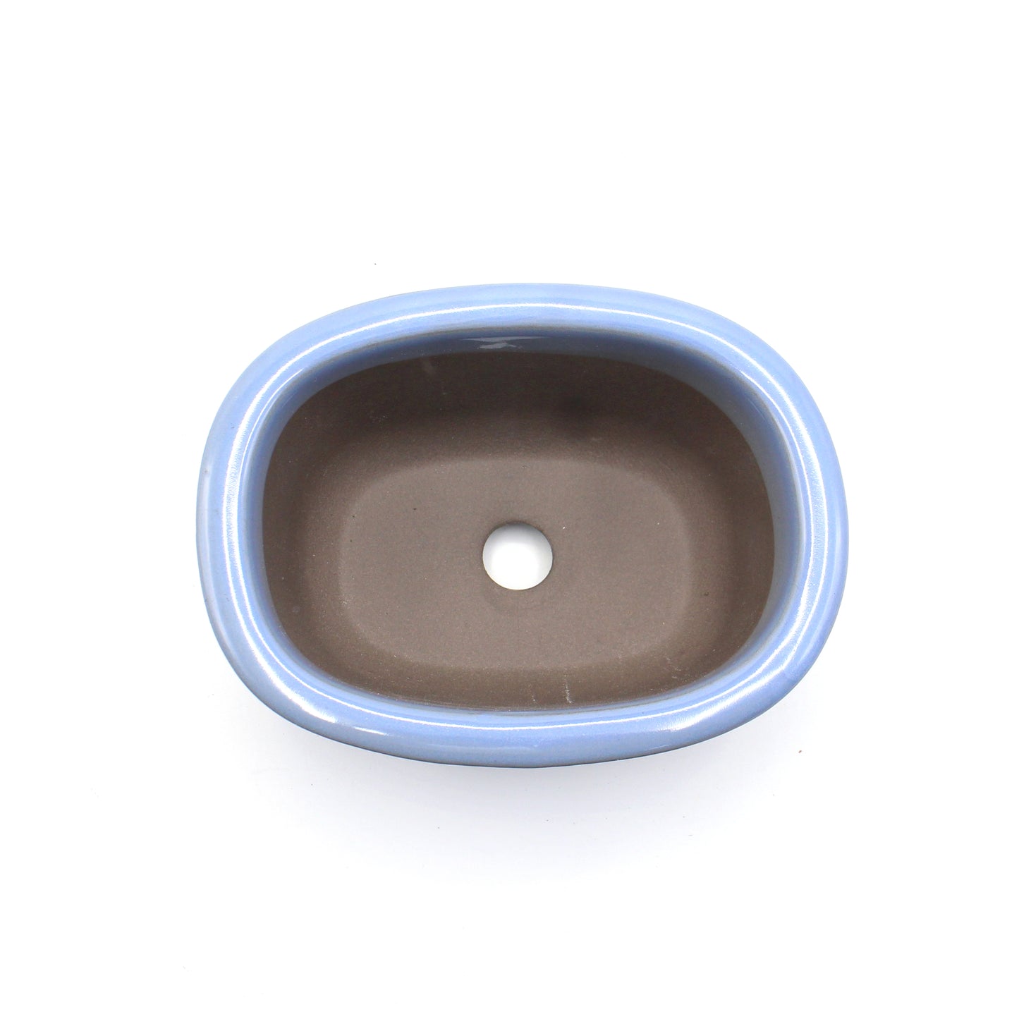 盆栽鉢 小判エン付鉢 瀬戸焼 (4号(約14センチ), 均窯釉(水色))