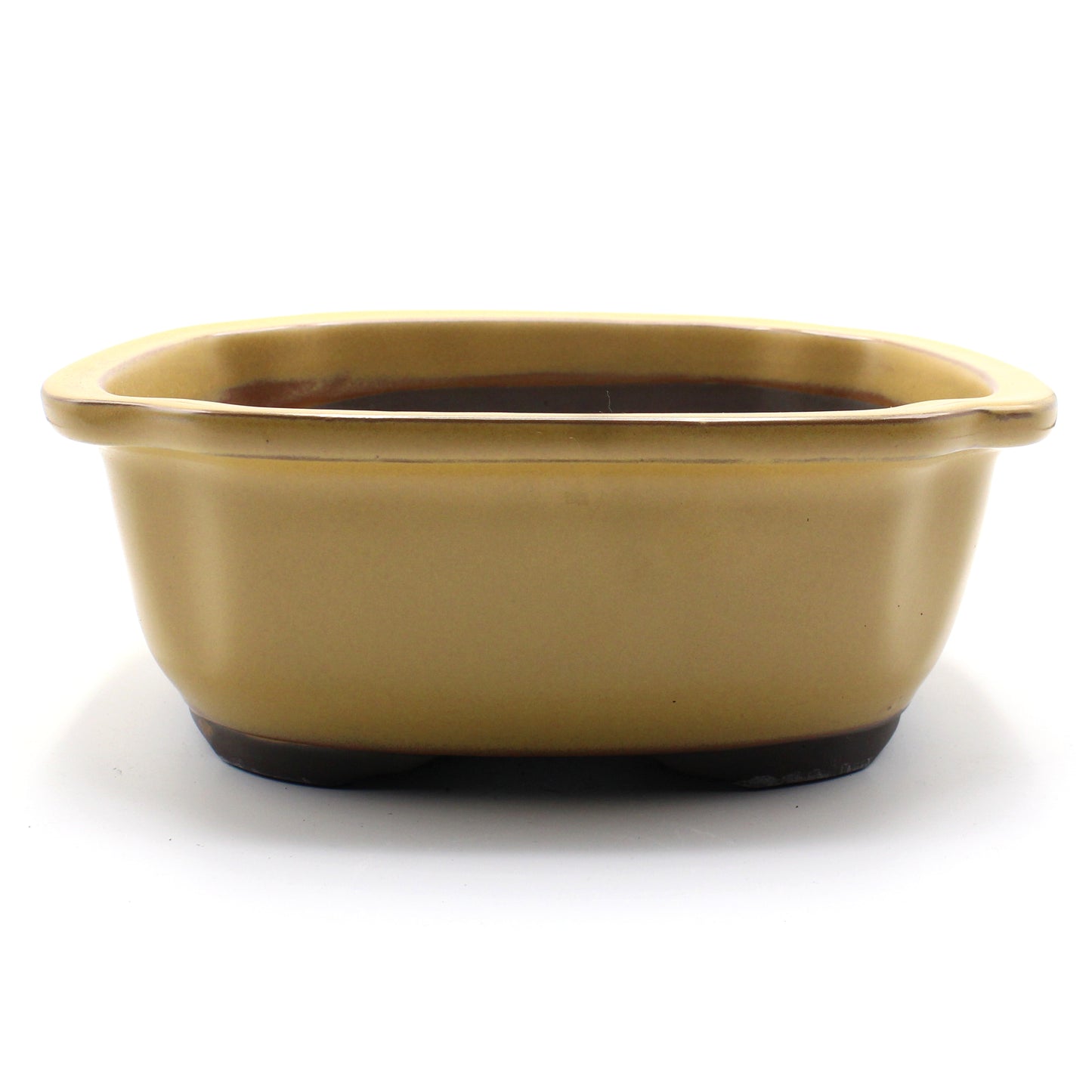 釉薬は黄釉、上から見た縁の形はモッコ(木瓜)