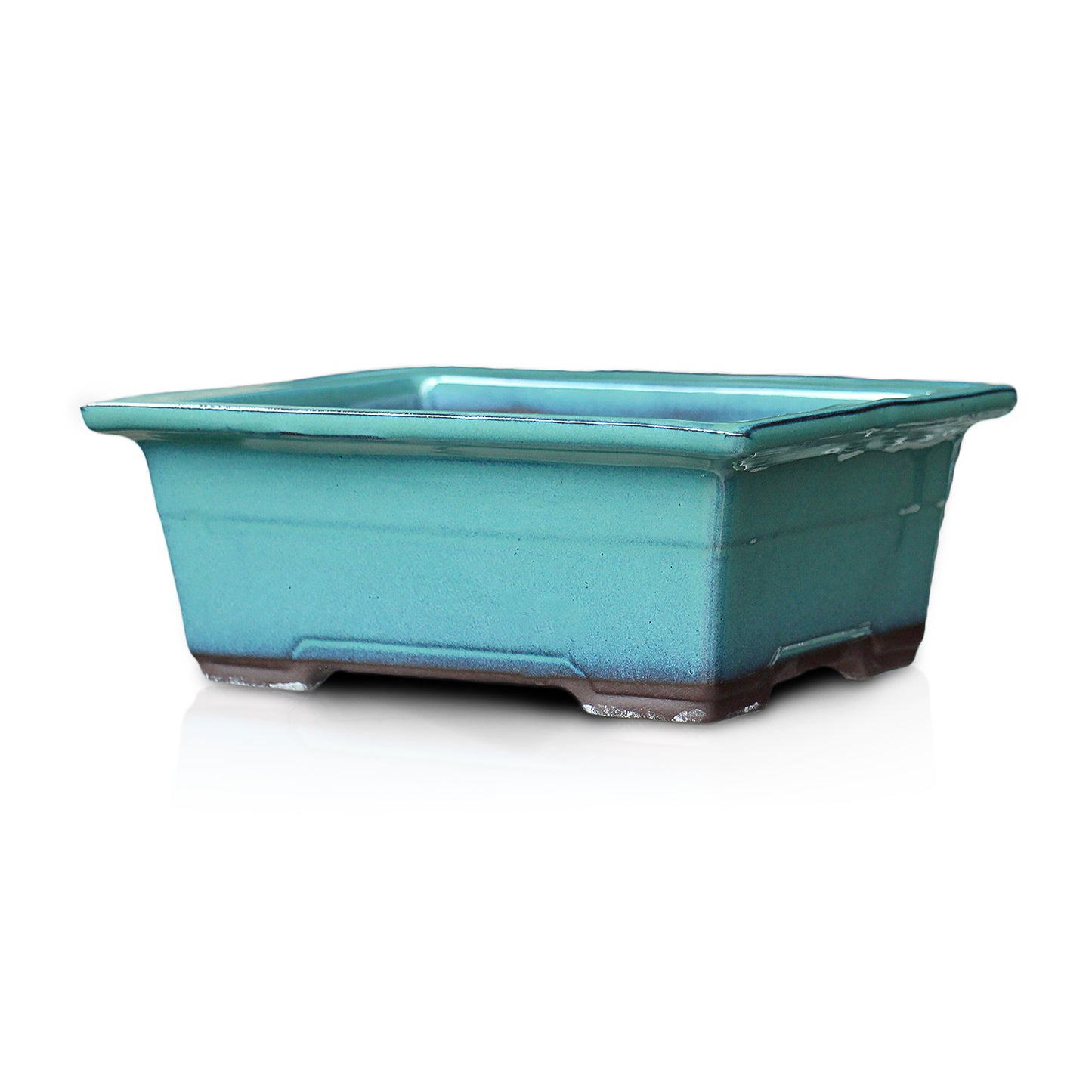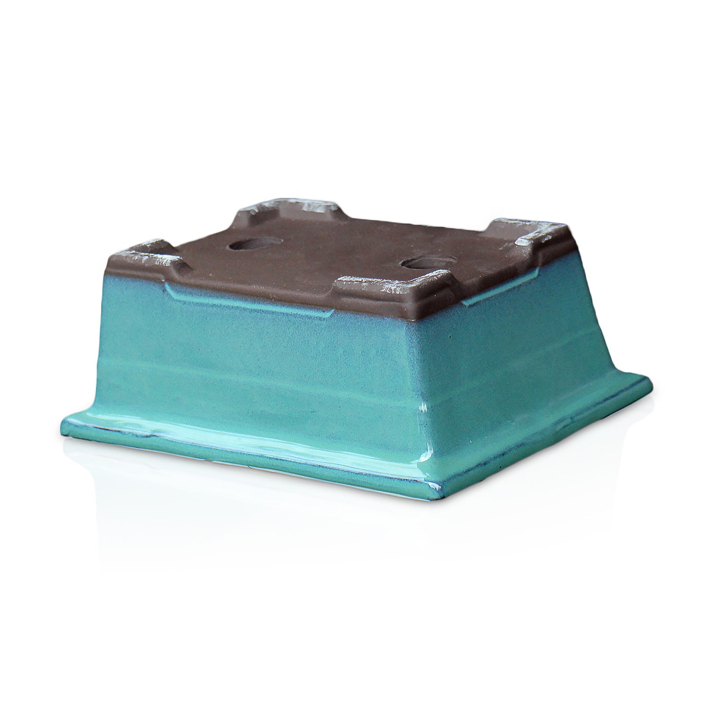 盆栽鉢 長角下帯 緑色 織部釉 瀬戸焼 (6号)