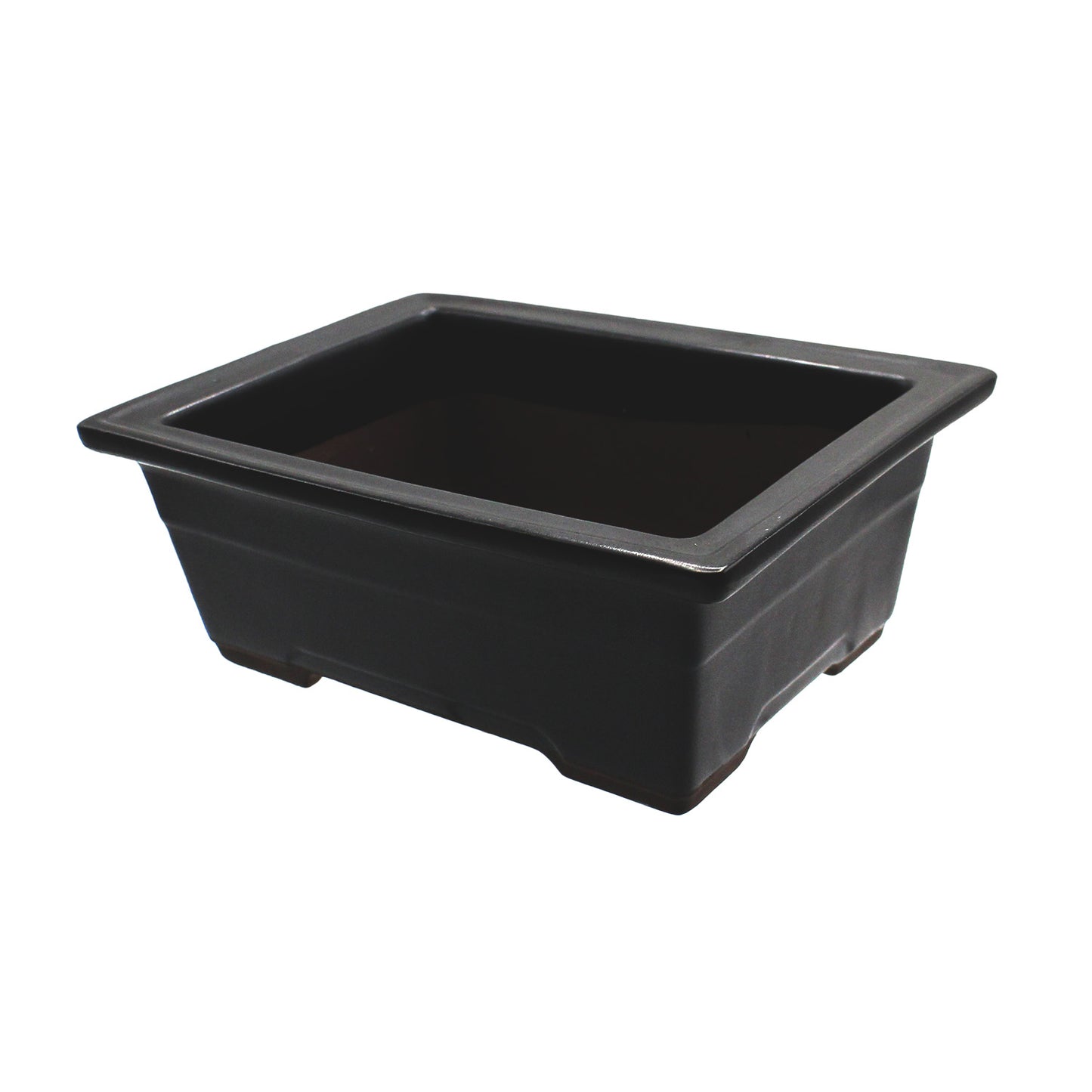 盆栽鉢 長角下帯 黒色 黒マット釉 瀬戸焼 (6号(約18.5センチ))